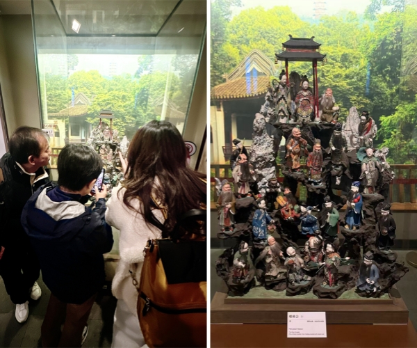 在历史文物展区,大家驻足于为慈禧太后祝寿而制的惠山泥人《蟠桃会》,这件清光绪年间的珍品,是艺人周阿生手塑、陈杏芳上彩的心血之作,超高的工艺水准搭配独具匠心的创造力,是无锡文化的鲜活载体,它承载着民间艺人的智慧与坚守,见证了惠山泥人从乡土手艺走向宫廷审美的辉煌,也记录了运河文化滋养下江南艺术的交融与发展。