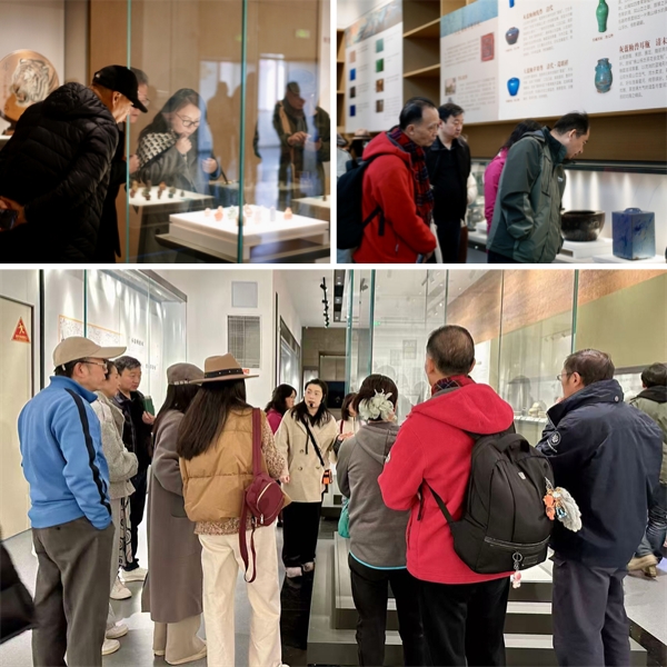 第二天,盟员们前往此次研学活动的第三站,国内最早成立的专业性陶瓷博物馆——中国宜兴陶瓷博物馆,领略国家级非物质文化遗产宜兴紫砂陶制作技艺的深厚底蕴。从新石器时代的夹砂陶、印纹硬陶,到唐宋时期的青瓷、均陶,再到明清盛极一时的紫砂茗壶,一件件展品串联起宜兴陶瓷的发展脉络。最让大家沉醉的,莫过于紫砂展厅的方寸乾坤。顾景舟的提璧壶线条简练、气韵沉稳,尽显大家风范;时大彬的仿古壶古朴典雅、砂质温润,蕴藏着明代文人的风雅意趣。展柜里的每一把紫砂壶,都凝聚着匠人的心血——从选泥、炼泥的千锤百炼,到打泥片、制壶身的精雕细琢,再到刻画、烧制的精益求精,每一道工序都容不得半点马虎。那细腻的砂质、流畅的壶嘴壶把、恰到好处的壶盖契合度,博物馆内丰富的藏品无不彰显着“方非一式,圆不一相”的紫砂美学。