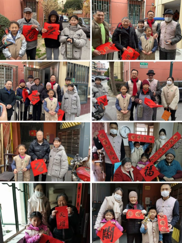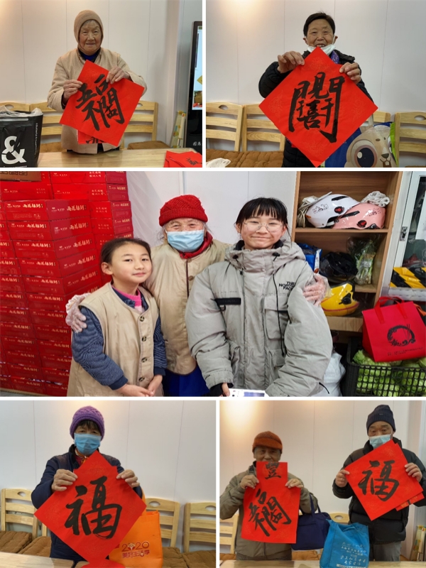 活动开展前,上海交大教工书画协会和申万宏源上海书画社分别选派了数位代表老师,利用自己的个人业余时间,用近两个月的时间共同书写了600个福字方斗和200份春联,准备将这些吉祥语和满满的祝福一同赠予老人。一幅幅春联,字体苍劲有力,寓意美好,既展现了书法艺术的魅力,又传递了浓浓的年味。